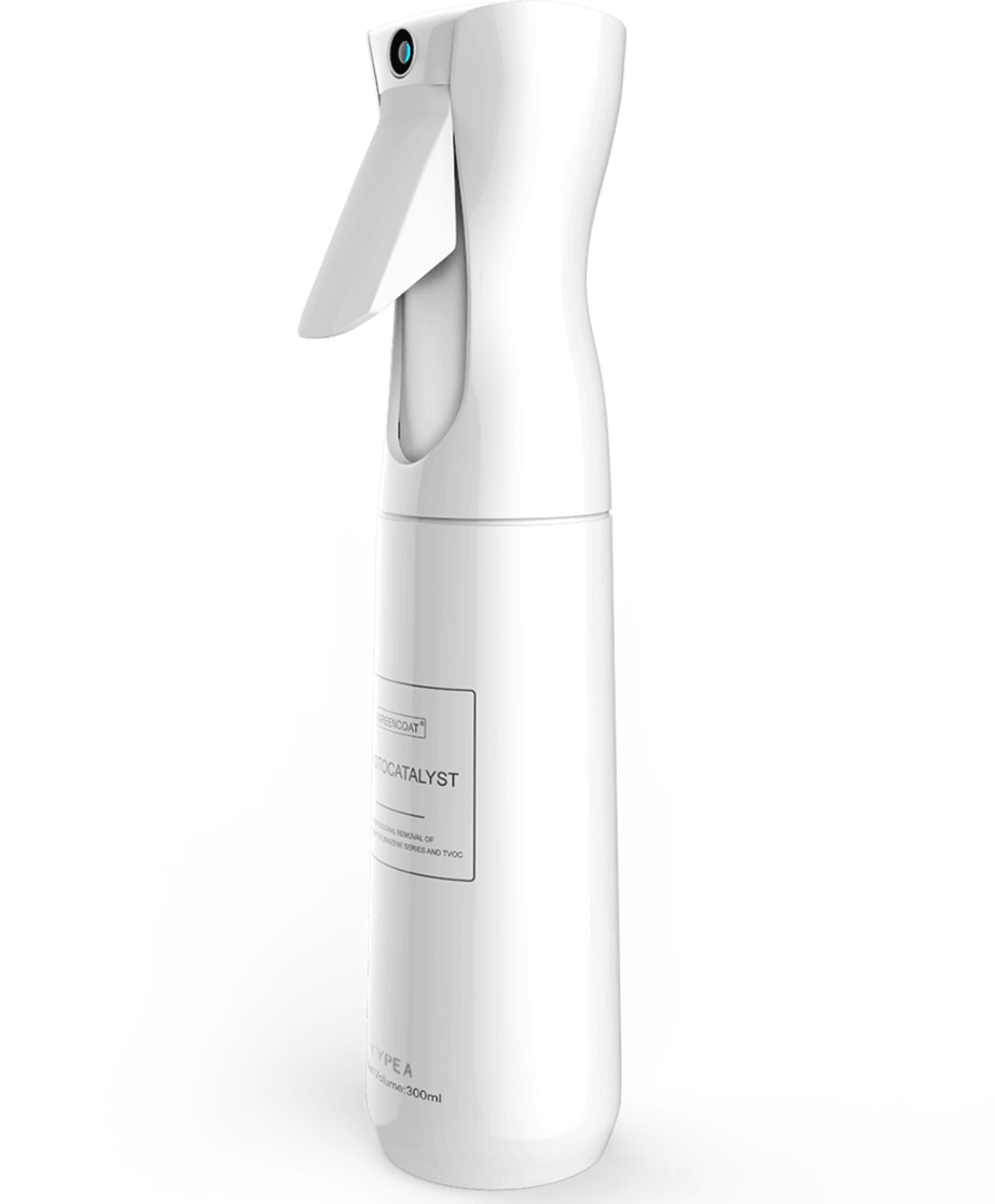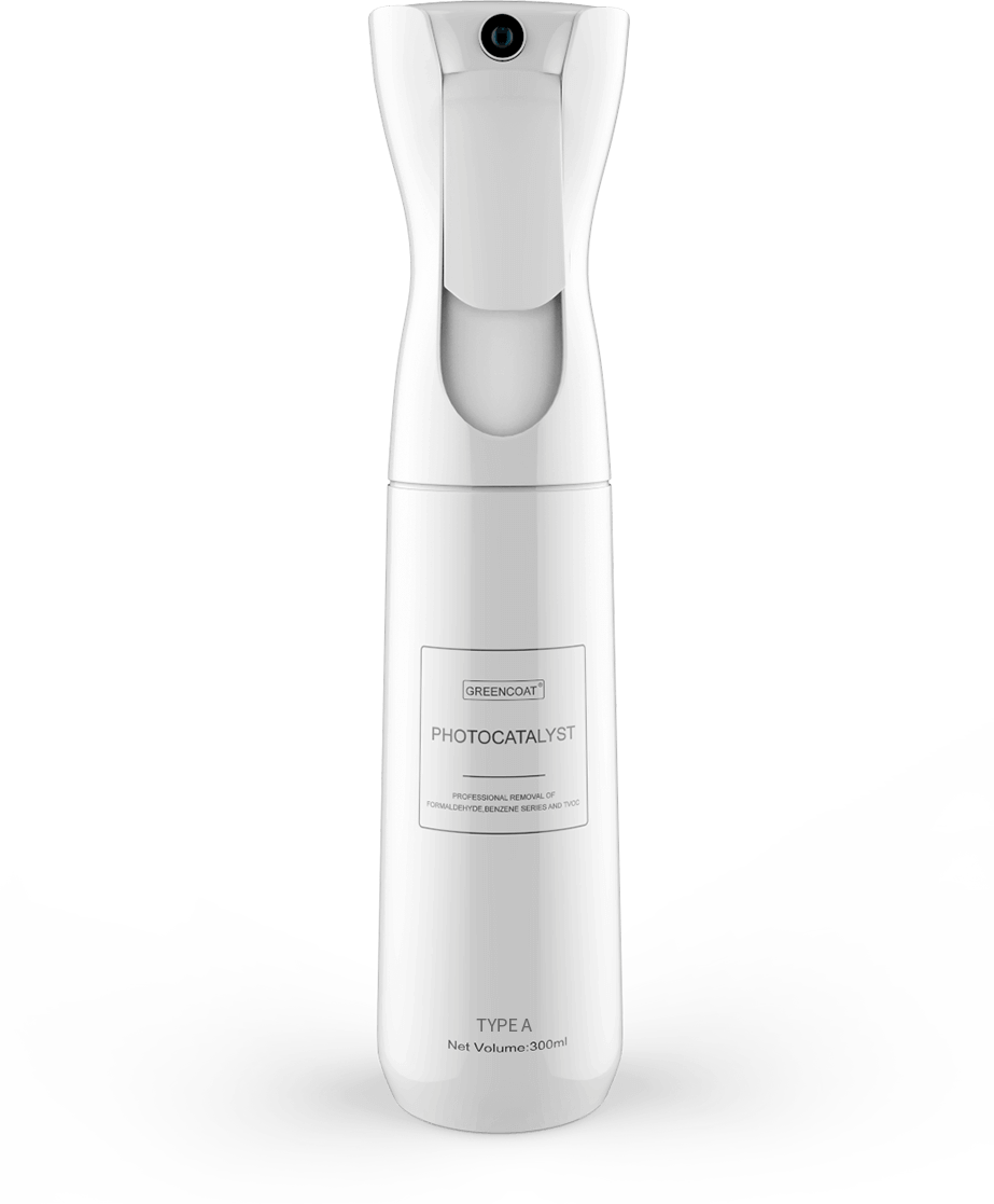 直接喷洒在墙面、墙纸等见光性较好的表面,形成光触媒保护膜,持久分解甲醛